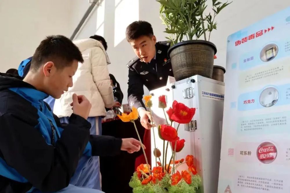现场展示仿真毒品、涉毒工具和缉毒装备,通过实物展示、警民互动等形式向孩子及家长普及识毒拒毒防毒知识。