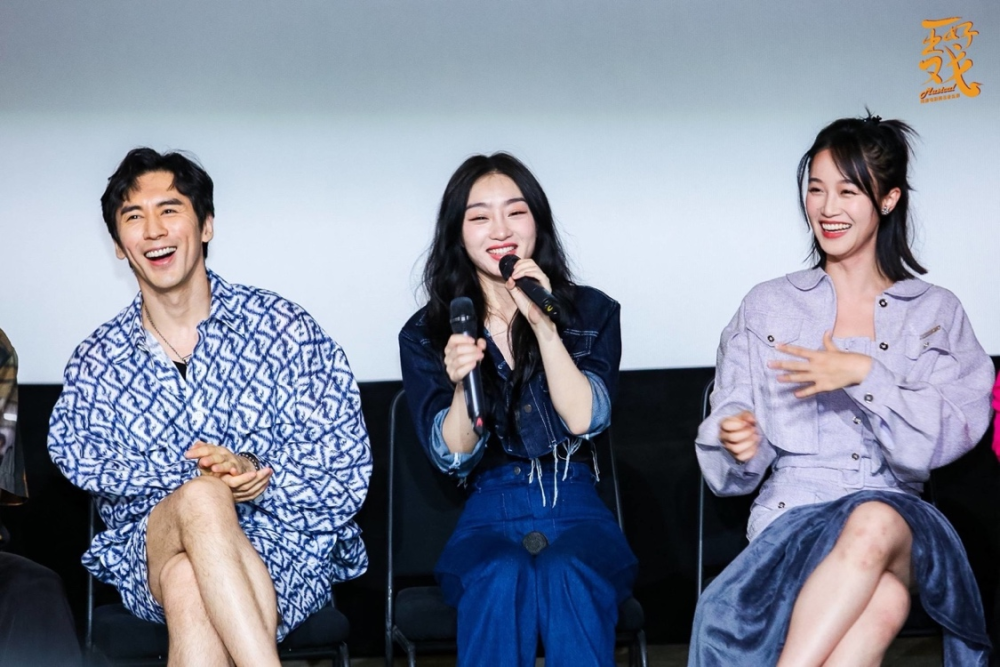 见面会现场,姗姗的饰演者蓝盈莹献唱了黄渤经典歌曲《最好的舞台》,带动主创主演纷纷分享自己在剧中喜欢的歌曲。张总的扮演者,张伦硕和赵穆宸现场同台献唱飙歌,直言被音乐吸引。张伦硕强调,自己在接触这部剧时写了200多字的“小作文”,为首次出演音乐剧感到焦虑,“拍戏是遗憾的艺术,但音乐剧的一次次排练打磨,会是自己永生难忘的一次经历”。