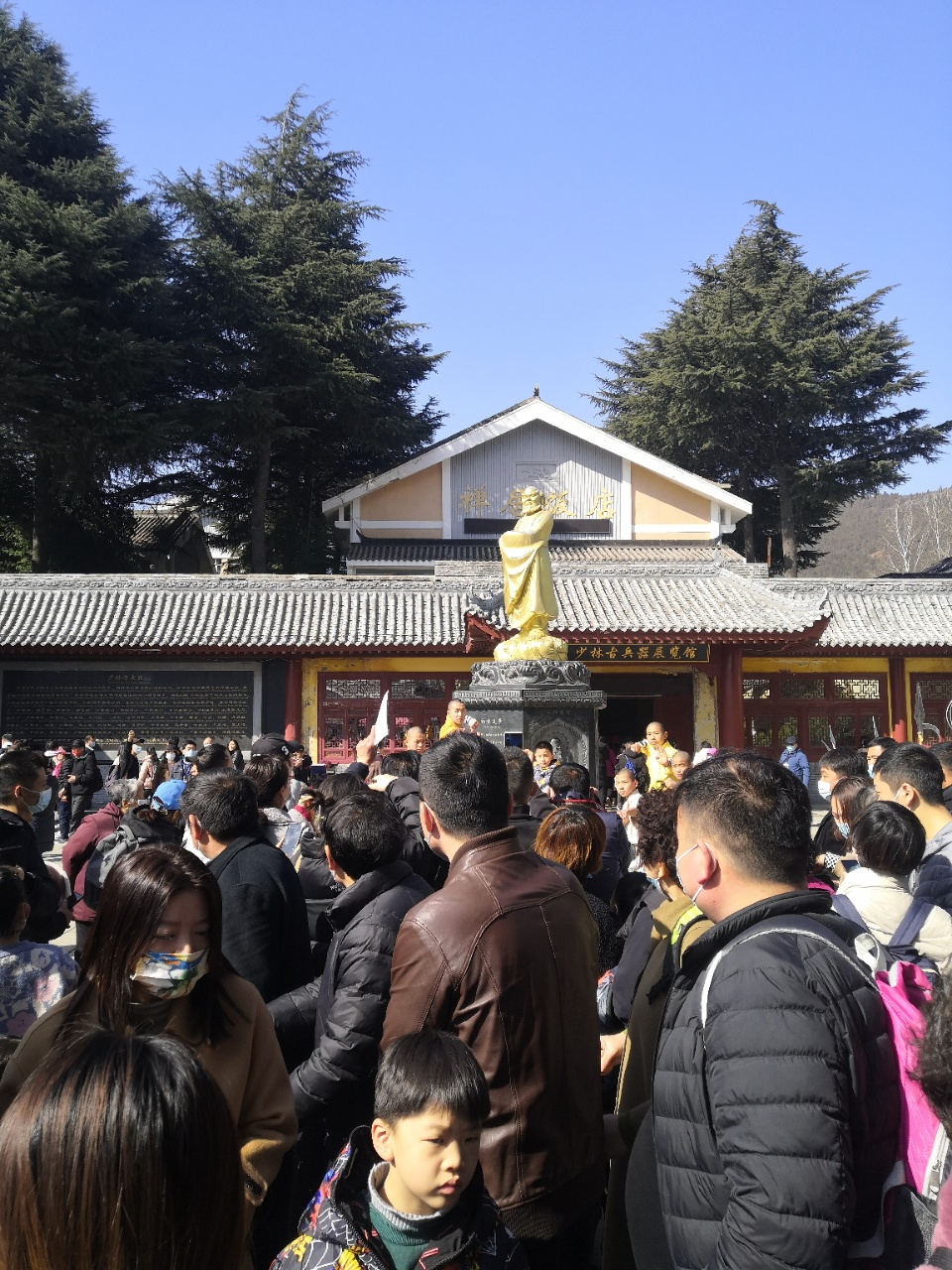 从大门口边走边看一会功夫就到少林寺寺院哪儿了,感觉走十几分钟就到了。我们上午是先去了少林武馆,先看了武术表演,强烈建议上午看,下午的话看的人会很多。