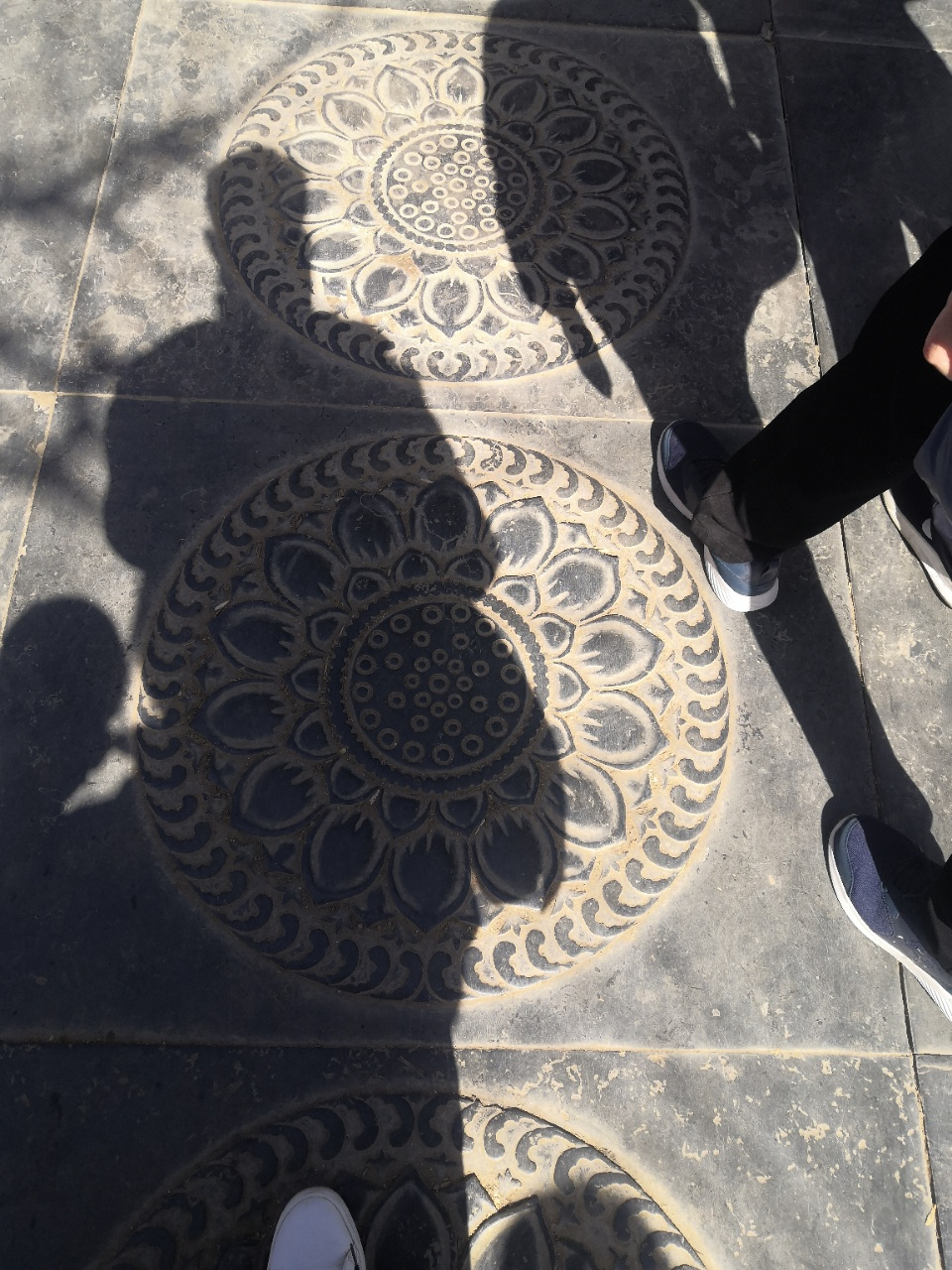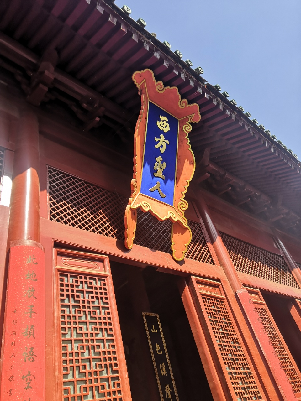 从天王殿到大雄宝殿的途中,地面有莲花造像的地板,佛曰:步步生莲。寓意吉祥,一定要走一走,沾沾福气!此莲花的花籽有33颗,象征三十三重天,莲花瓣有三层,代表佛教最高级别,像佛祖观音的坐莲都是三层,另外,北京故宫的太和殿(俗称金銮殿)须弥座也是三层,是我国古代最高级别的皇家建筑。