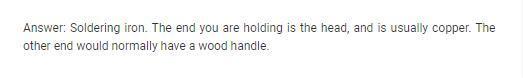 “其实是电烙铁,你拿着的那端是头,通常是铜的。另一端一般会有个木质把手。”