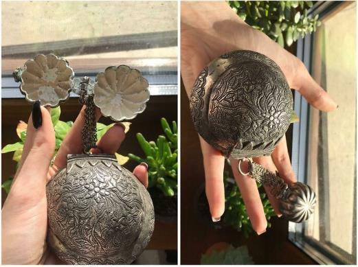 “在我父亲的古董收藏里找到的,但我俩都不知道它是啥。我认为它是银质的,非常非常重。”