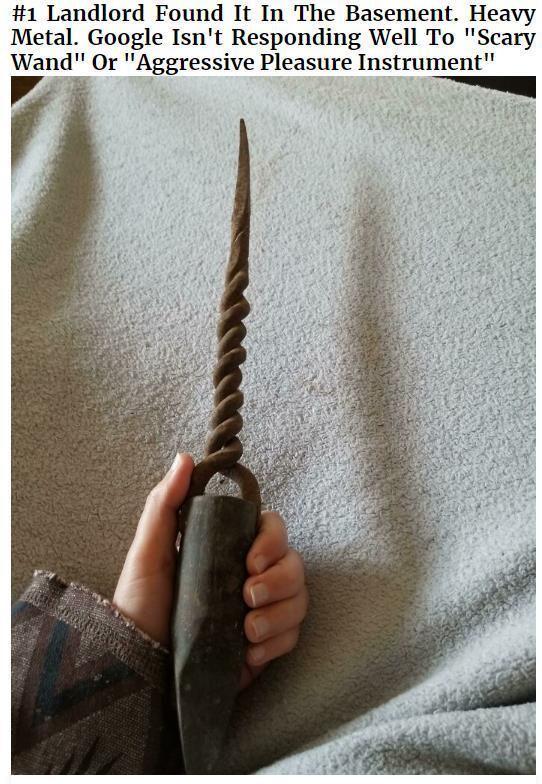 “房东在地下室发现的,很重的铁疙瘩。谷歌搜‘恐怖魔杖’或‘很猛的快乐工具’,都找不到啥结果”