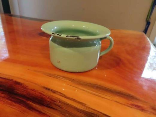 “在美国威斯康星州的一家古董商店找到的。顶部整圈直径大概六英寸,孔径大概3.5英寸。这是个迷你痰盂么?”