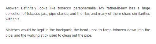 “应该是某种烟草用具。我岳父收藏了一大堆烟草罐、烟斗架什么的,很多东西跟你这个挺像的。”