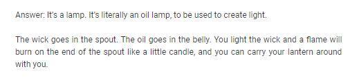 “这东西很重,黄铜的,看着有点像阿拉丁神灯。它有个奇怪的切割样的喷口,还有个狭窄,向上的喷口,它是什么?”