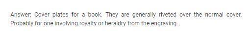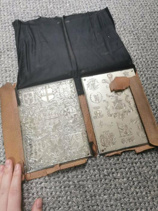 “应该是某本书的封面板。它们一般是铆接在普通封面上。从它上面的纹饰上来看,这本书应该涉及皇室,或者是讲纹章学的。”