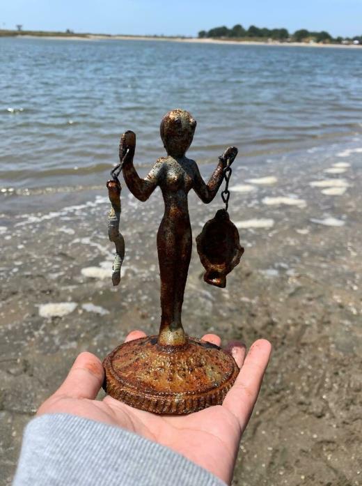 “祂一只手拿着蛇,另一只手拿着面具,但它们通常会脱落下来,因为这些雕像百分百都是被保存在水里的。”