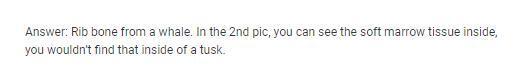 “这是鲸鱼的肋骨。在图二中,你可以看到内部的骨髓组织,象牙里可没有这个。”