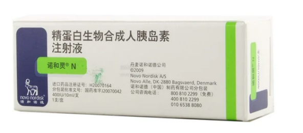 (3)中效胰岛素:起效较为缓慢,皮下注射后2.5-3h起效,作用达峰时间为5-7h,作用持续时间13-16h,临床常用的有诺和灵N,优泌林N等。