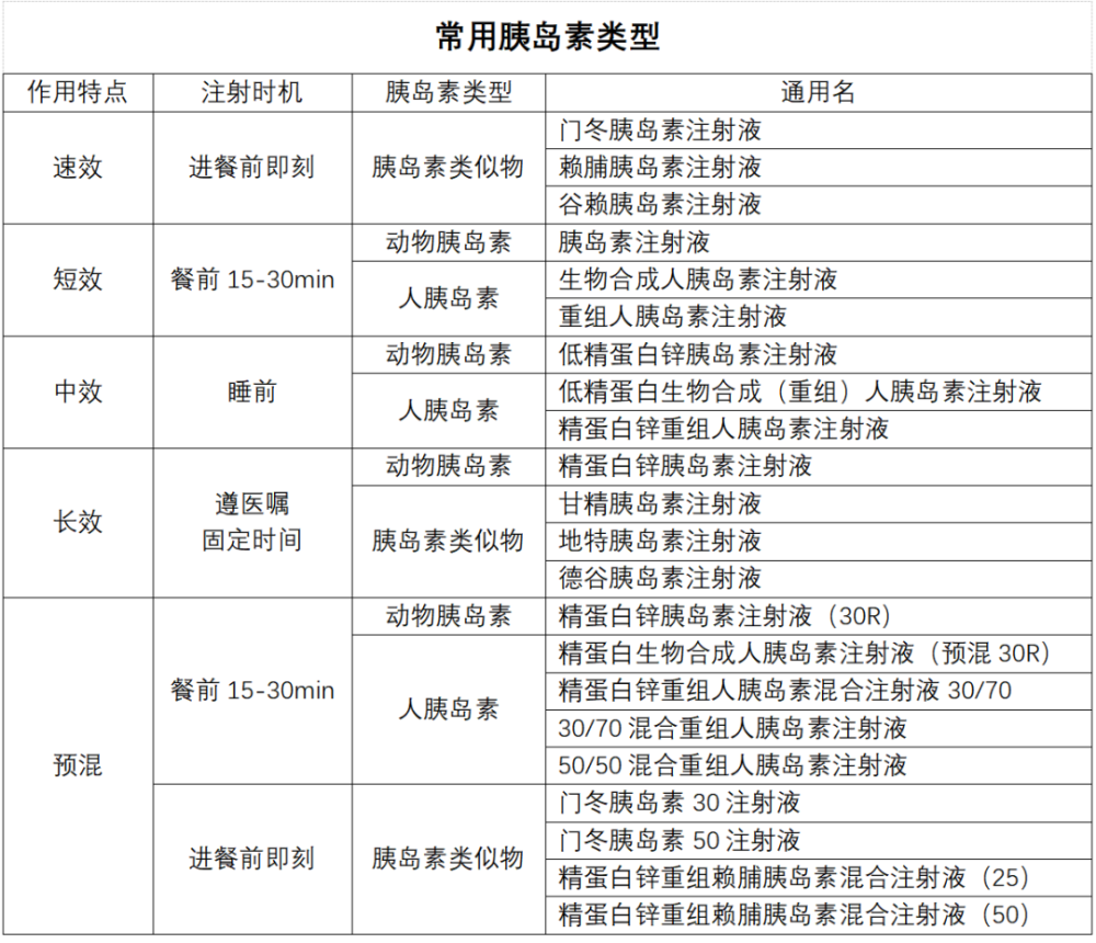 胰岛素分类与注射时机选择
