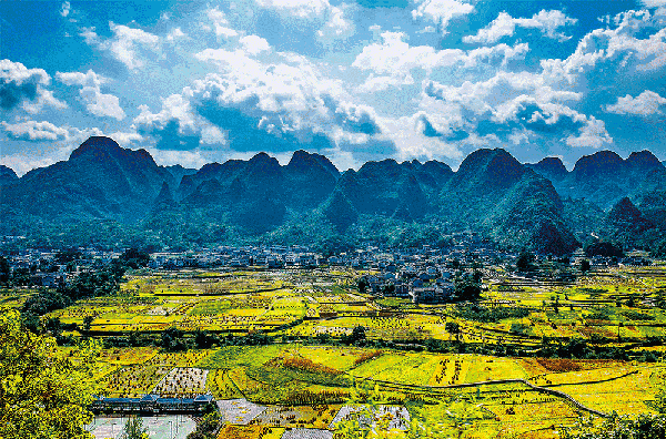 “奇峰儒林,田坝似锦,河水如带,村寨错落”