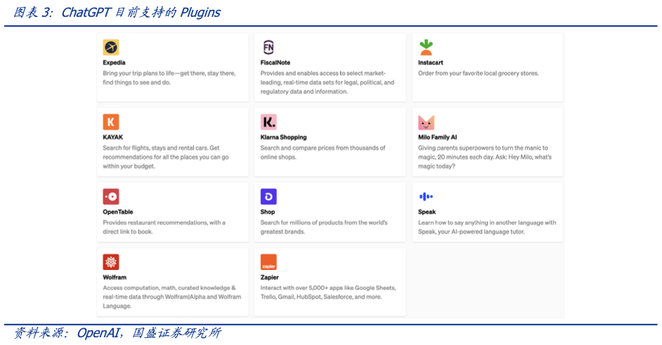 OpenAI将在下周向所有ChatGPT Plus用户开放联网功能和众多插件。从3月的Alpha到Beta版本,ChatGPT将允许Plus用户访问互联网,并使用超过70个第三方插件。在插件加持下,ChatGPT的“毛细血管”将进一步触达应用末端,为大模型、实时信息和用户搭建了三者之间的沟通桥梁,解除了ChatGPT此前只能依靠基于旧训练数据作答问题的限制。