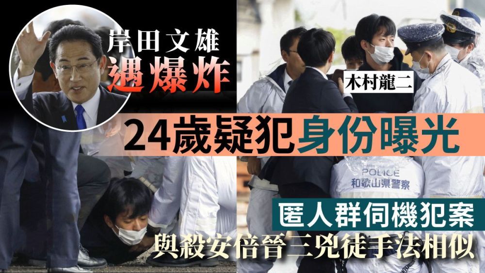 投掷这一枚物体的犯罪嫌疑人也被当场控制,并被确认为24岁的木村隆二。但令人大跌眼镜的是,当场控制住该男子的并非岸田安保团队的特勤人员,而是一名发现该男子危险行径的民众。