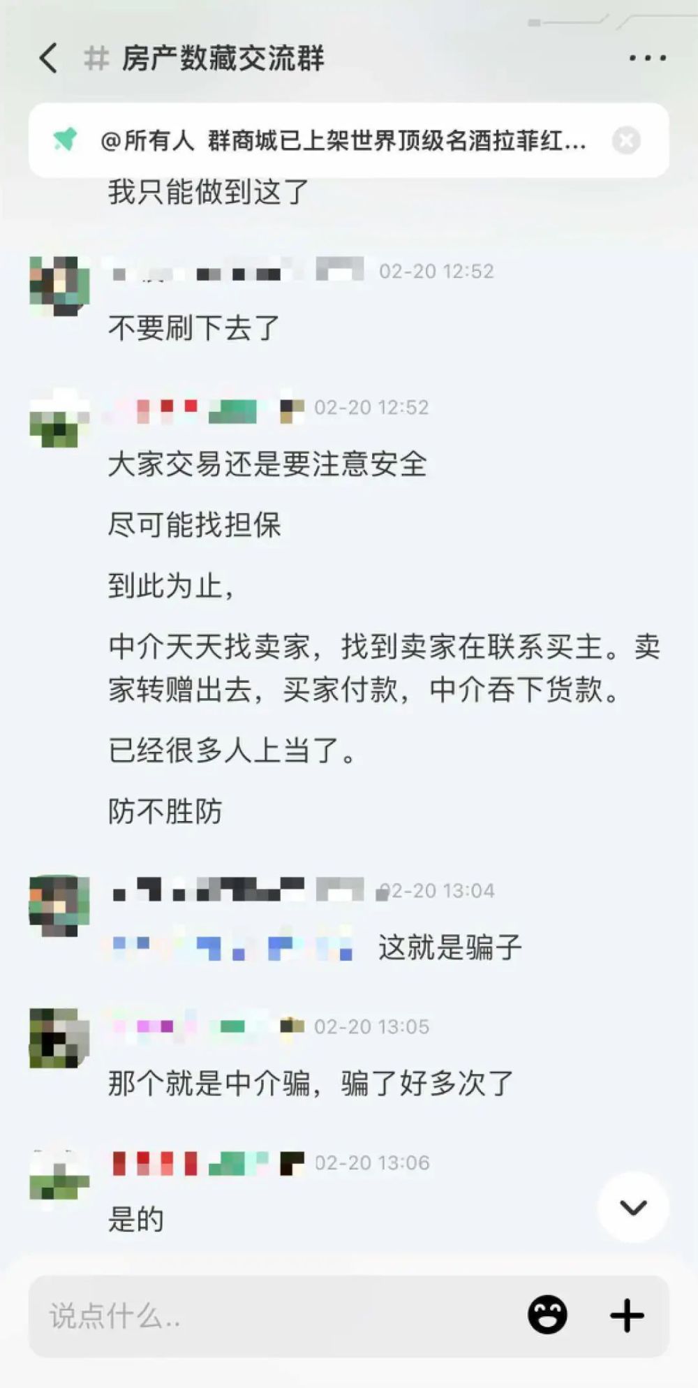 图注:有玩家在社群称,交易房产被“中介诈骗”。
