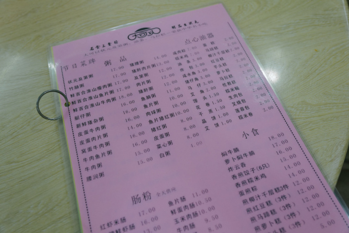 看着菜单上写的招牌是及弟粥、油条以及马拉糕,那就各来一份。