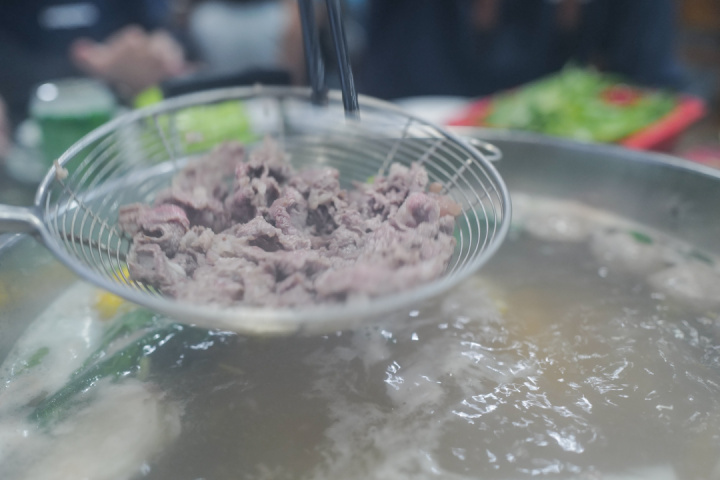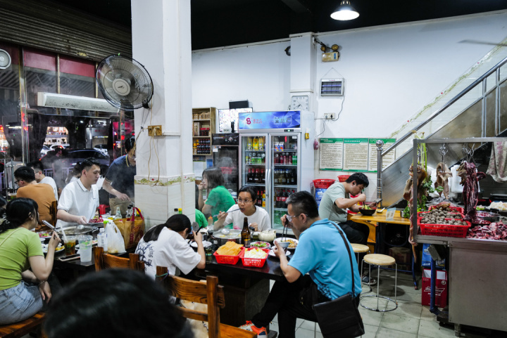 来广东,牛肉火锅这一顿肯定是少不了的。这家店在当地开了9年,一楼吃粿条汤粉类的快餐,二楼吃火锅。