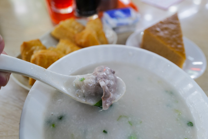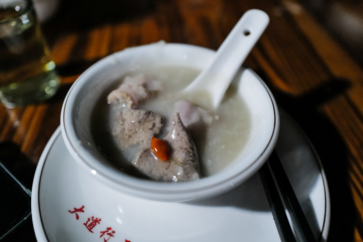 招牌的猪杂粥,猪肝、粉肠、猪心……加上绵滑招牌粥底生滚出一煲非常接地气的广式猪杂粥。