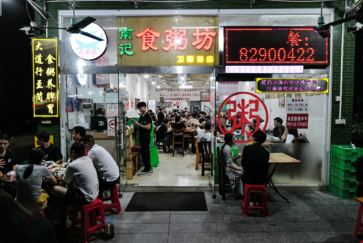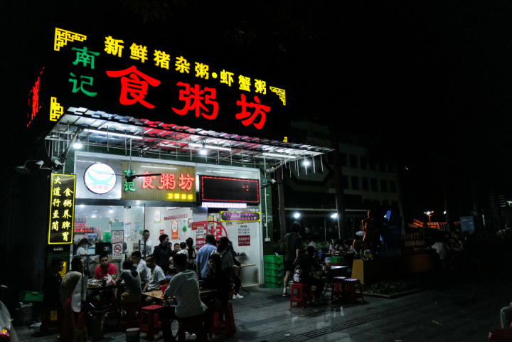 南记,可以算是佛山当地做大做强的连锁粥企,简单朴素的环境,深夜家家爆满。