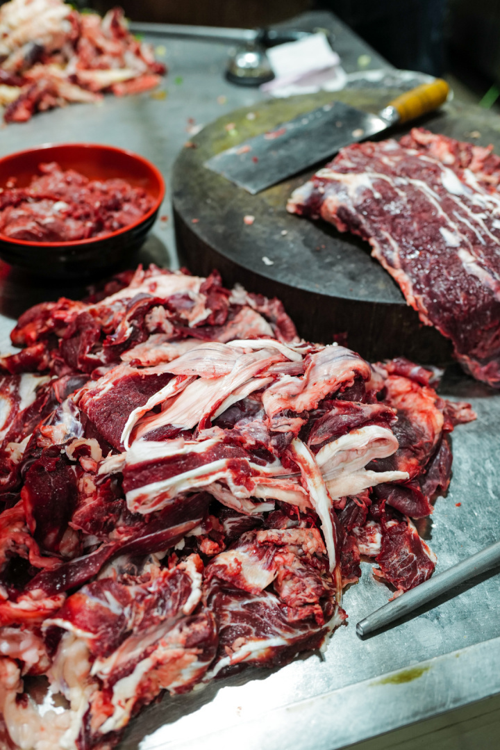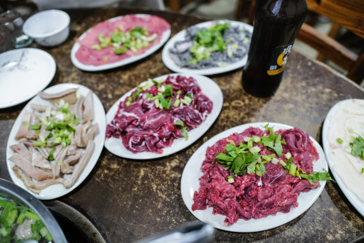 潮汕牛肉火锅的牛肉食材的核心是不冷冻、不排酸,从宰杀到上桌最佳时间是4小时以内,这时候的牛肉会有原本的鲜甜。可以说一家好的牛肉火锅店,新鲜的牛肉是灵魂。