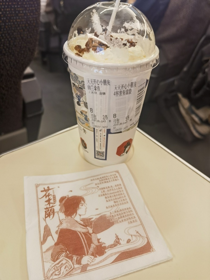 这次去佛山,没啥经验,由于涉及到换乘,怕航班耽误,所以选择了从杭州东站坐高铁到广州南站。发现该班次还路过长沙南站,这不就在某二手app上,看有没有茶颜悦色的代购,没想到人生的第一杯茶颜悦色就在高铁上喝到了。