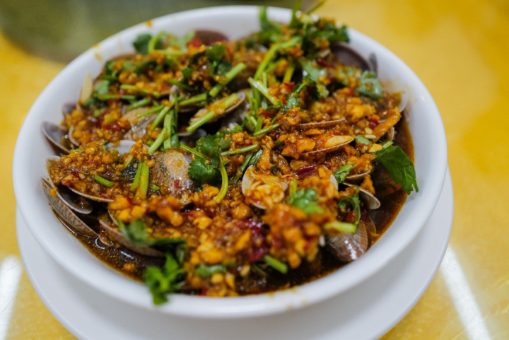 这家店主打的是生腌,其他产品都已估清,只能点了花甲和虾。