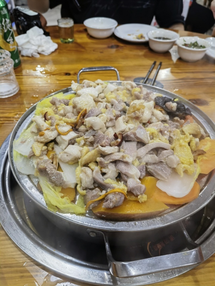 在杭州吃过一次桑拿鸡就念念不忘,我问这家店老板,一只鸡几斤时,老板反问我你们多少人。当得知我们一行6人时,很开心就说,你们刚好点一只鸡够啦,有10斤。说罢就进厨房去了,我们在外面等着听到后厨传来一阵鸡叫,好一个“活鸡现杀”!