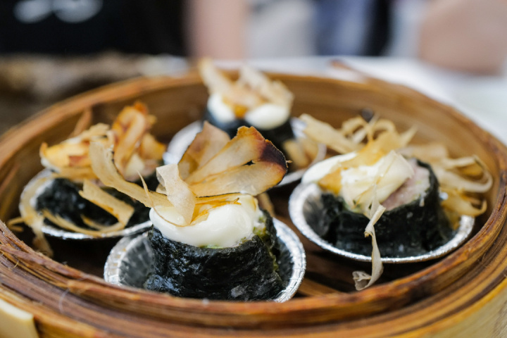 老字号在传承之余不忘创新,比如把传统点心烧麦改良为“章鱼紫菜烧麦”,看着有些网红,底子却拿捏得很好,一口咬下紫菜在口中融化,木鱼花和里面的肉馅,满口生香。