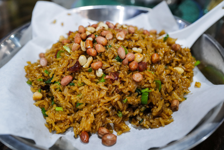 生炒糯米饭,腊味、花生米、还有粒粒分明的糯米,分量也是实打实的足。