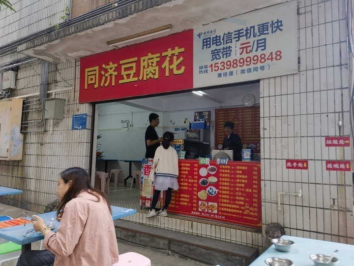 除此之外,佛山街头还散落着许多老字号糖水铺。市中心闹市区的同济豆腐花,也是挺有年数的,我在买这份豆花的时候,边上听到爸爸在跟自己的小孩说,这个是爸爸从小吃到大的哦。