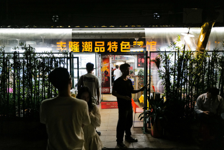 横街窄巷里的居民楼下,是一间大排档环境的潮汕特色菜馆。