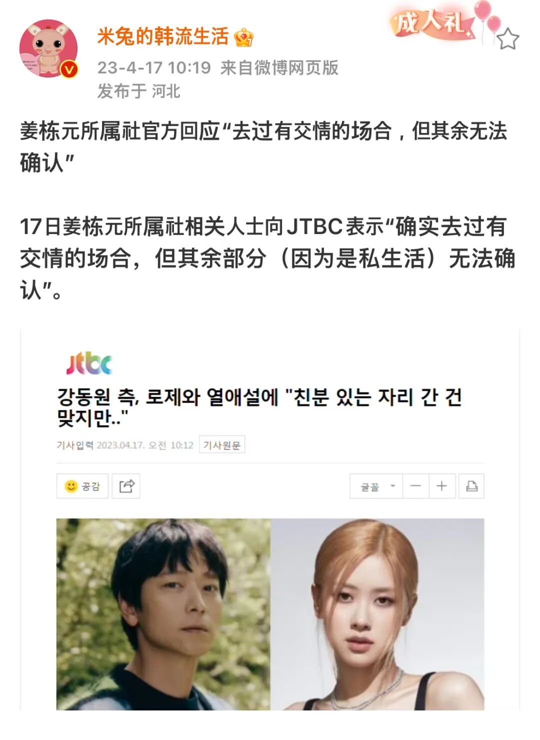 除此之外,更有网友透露自己的朋友的弟弟/妹妹亲眼见过姜栋元和ROSé在首尔清潭洞喝酒。