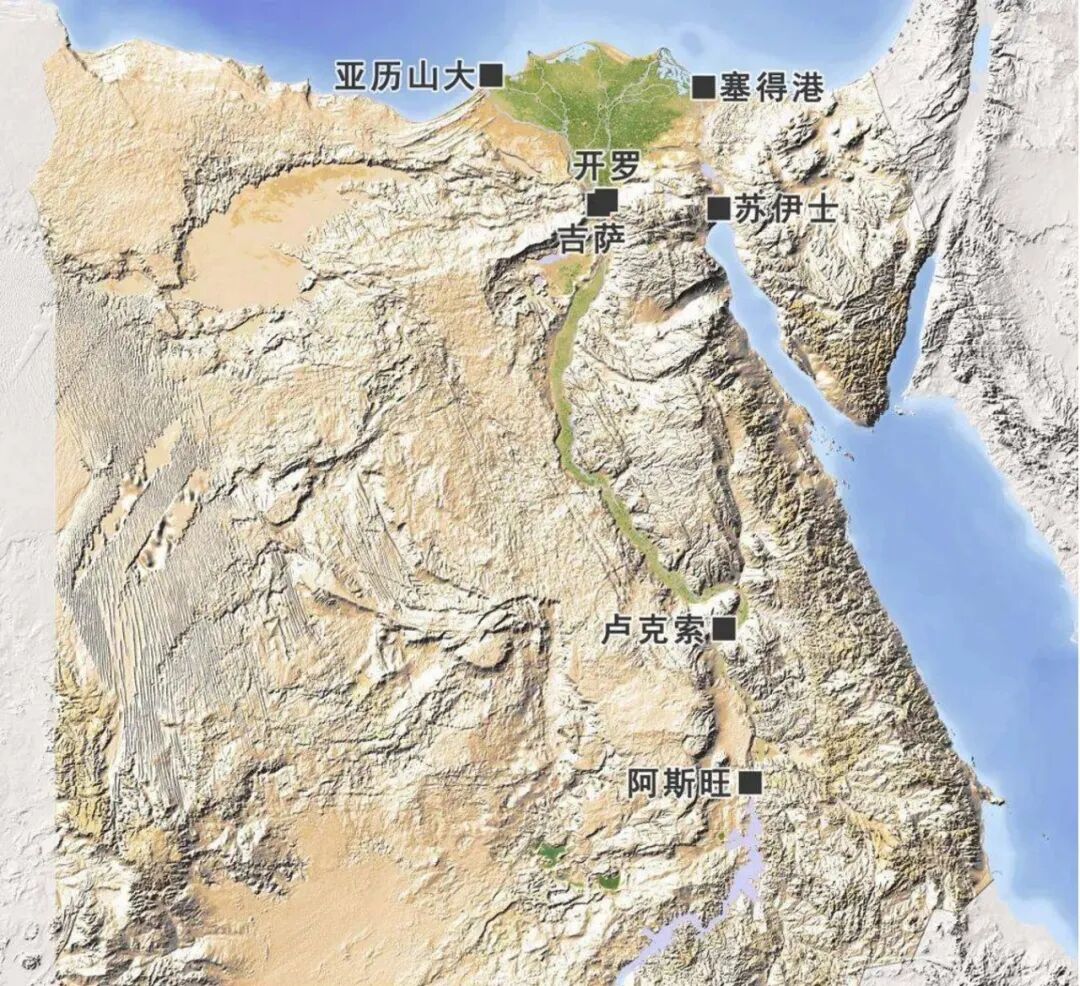 尼罗河三角洲在北部,属于下埃及,处于尼罗河的下游。以亚历山大名字命名的城市亚历山大城(Alexandria)矗立至今,也在埃及北部的地中海,现在是埃及第一大港口,离我们停靠的塞得港口只有两百六十公里。
