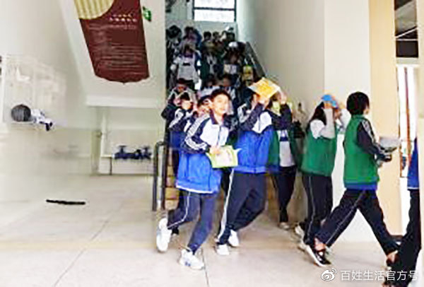 当模拟地震指令发出,同学们第一时间在教室里利用课桌三角区紧急躲避避险,按照学校指定在应急逃生路线迅速撤离,在演练过程中,学生用手或书本保护头部,伏低身姿猫步逃生,安全有序转移到开阔地面,没有拥堵,没有打闹,以班级为单位迅速集合,并快速转移到学校应急避险场所田径场,再次以班级、年级为单位、整齐列队并检查清点人数,整个疏散撤离过程快速有序。