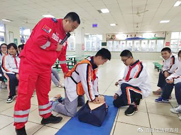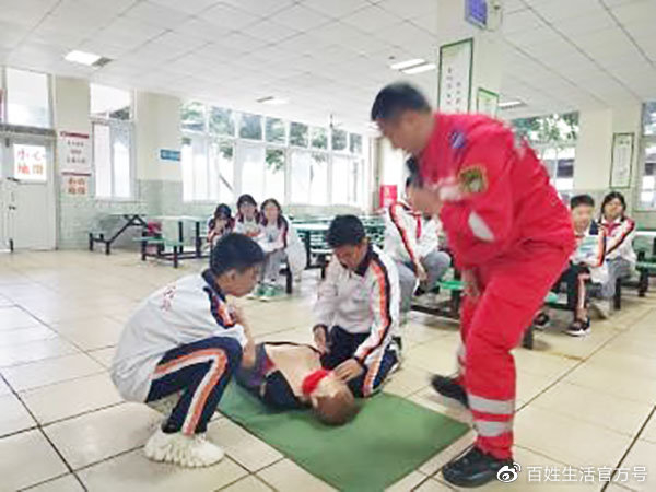 最受学生们欢迎的是心肺复苏的技能学习。老师细致讲解心肺复苏的知识点,用幽默的语言说明从最初的呼唤患者到最后的抢救结束的过程中的注意事项,学生们都认真倾听,参与体验,充当情景模拟中的路人拨打119、寻找附近的AED,在实际操作环节中积极尝试心肺复苏操作。
