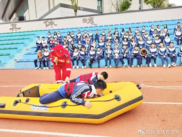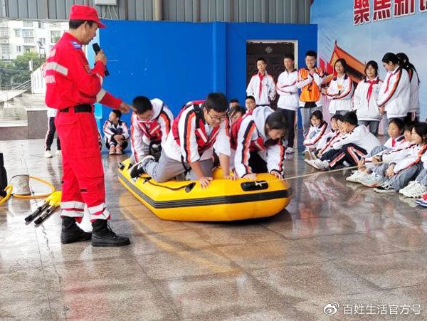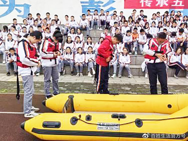 课堂上老师详细解释了防溺水的技巧和游泳注意事项,提醒同学珍爱生命,远离江湖河塘,坚决杜绝溺水事故的发生。课堂情景模拟中,老师用“叫”“伸”“抛”等关键词让同学们快速记住遇他人溺水的施救方法;同学们体验穿着救生衣对溺水者进行施救,老师细心教导学生,救生衣过松会上浮导致应急效果减弱,过紧则增大自己的不适感;而救生衣上的哨子是用来呼救,便于保持体力,并且利用现场冲锋舟体验了一把救援队在水上救护过程中的使用技巧和注意事项。