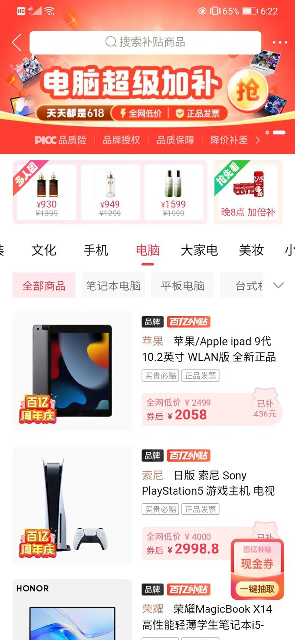 拼多多百亿补贴“超级加补”活动再次重磅出手。此次超级加补瞄准的重点是被称为“3C重镇”的电脑品类,部分产品的补贴力度甚至达到40%。