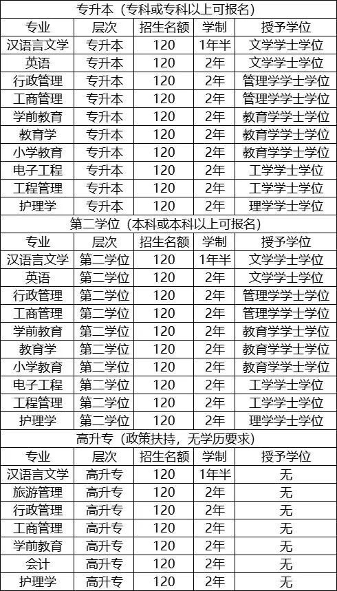 学历层次:初升专、高升专(本)、专升本