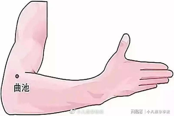 术者拇指、食指指腹相对拿手肘曲池,拿3~5次。