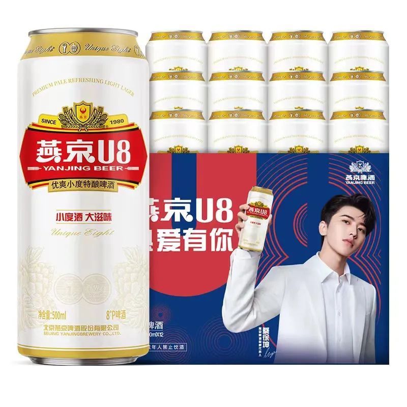8°P500听装燕京U8(经典款)12瓶原价72元,现价66.8元(随机搭赠蔡徐坤海报/周边礼品)