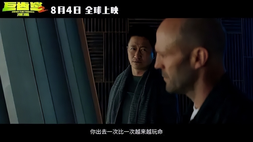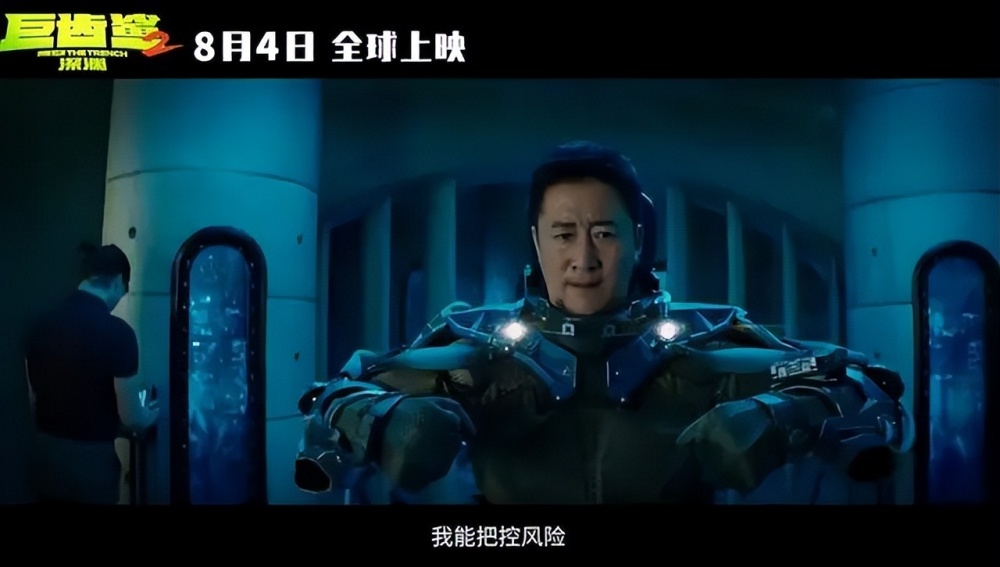 打斗画面也很精彩,杰森·斯坦森抽出双刃战刀对着巨齿鲨的时候,简直太帅了,而吴京则穿着护甲,与杰森·斯坦森开怼,看似相爱相杀的伙伴。