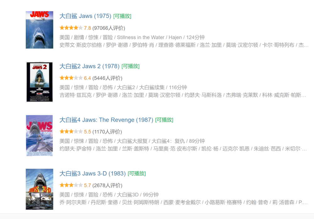 除了1975年开始上映的《大白鲨》系列外,目测找不到可以和《巨齿鲨》抗衡的大电影了。