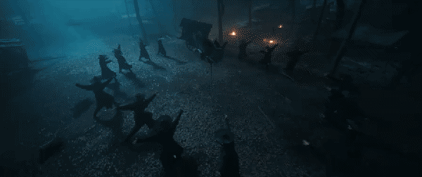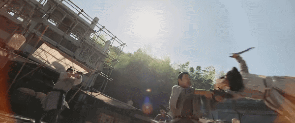 这是一个非常讨巧的做法,用快速剪辑和复杂动作调度保留了人物打斗的飘逸、狠利质感,而将设计留给了场面调度。