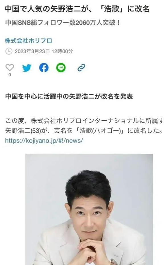 去年中秋节,矢野浩二宣布采用中文名“浩歌”,表明他已决定在中国演艺圈发展,并期待获得大家的支持和关注。这一行动反映了他对中国的热爱和投入。