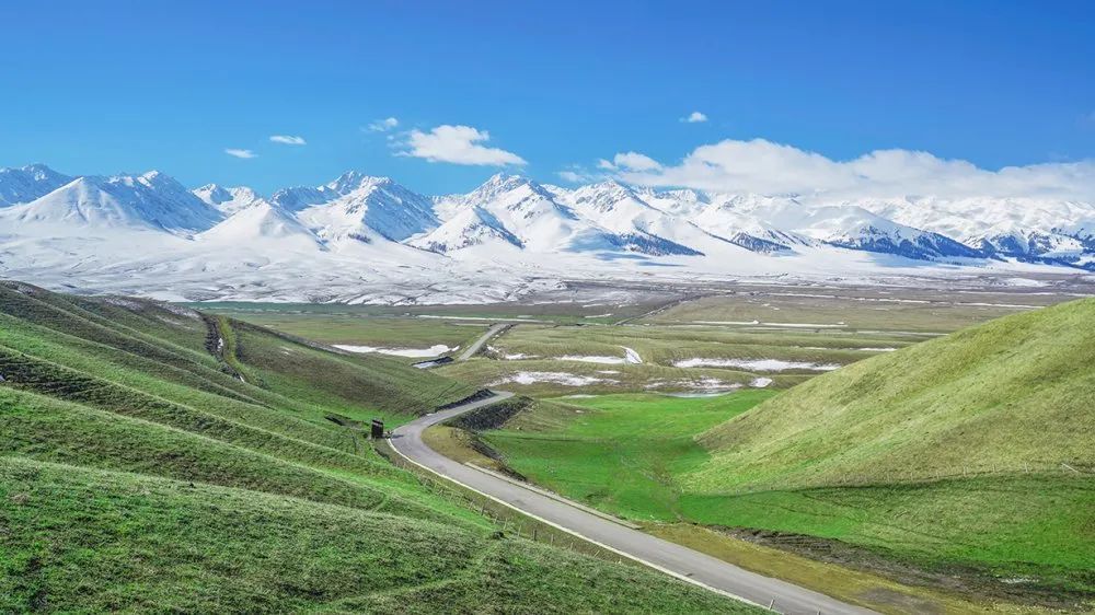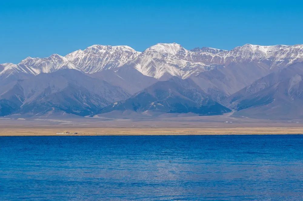 赛里木湖背靠雪山