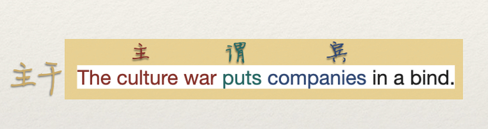 今天这个题,主要就看你是否认识in a bind这个短语,意思为「左右为难」,能认识这个词,第二句话就已经把答案挑明了,就是C。第一句话就说了保守派和觉醒主义是两个互相敌对的势力,保守派是要抵制这些觉醒主义的。对于企业来说,他们只想赚钱啊,两方都不想得罪,肯定就是左右为难。