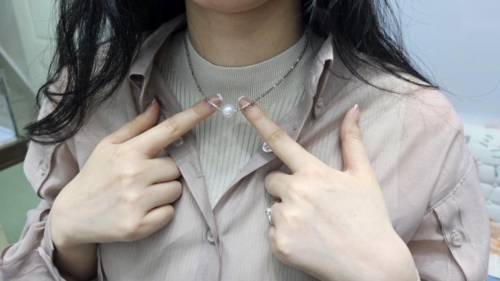 “珍珠早就不是原来那种挂脖珍珠项链了,现在款式时尚又好搭衣服。”说着小冉给记者展示了她脖子上的珍珠项链,这是今年的爆款“碎银子”,不规则的银链子配上一颗珍珠,时尚且优雅。