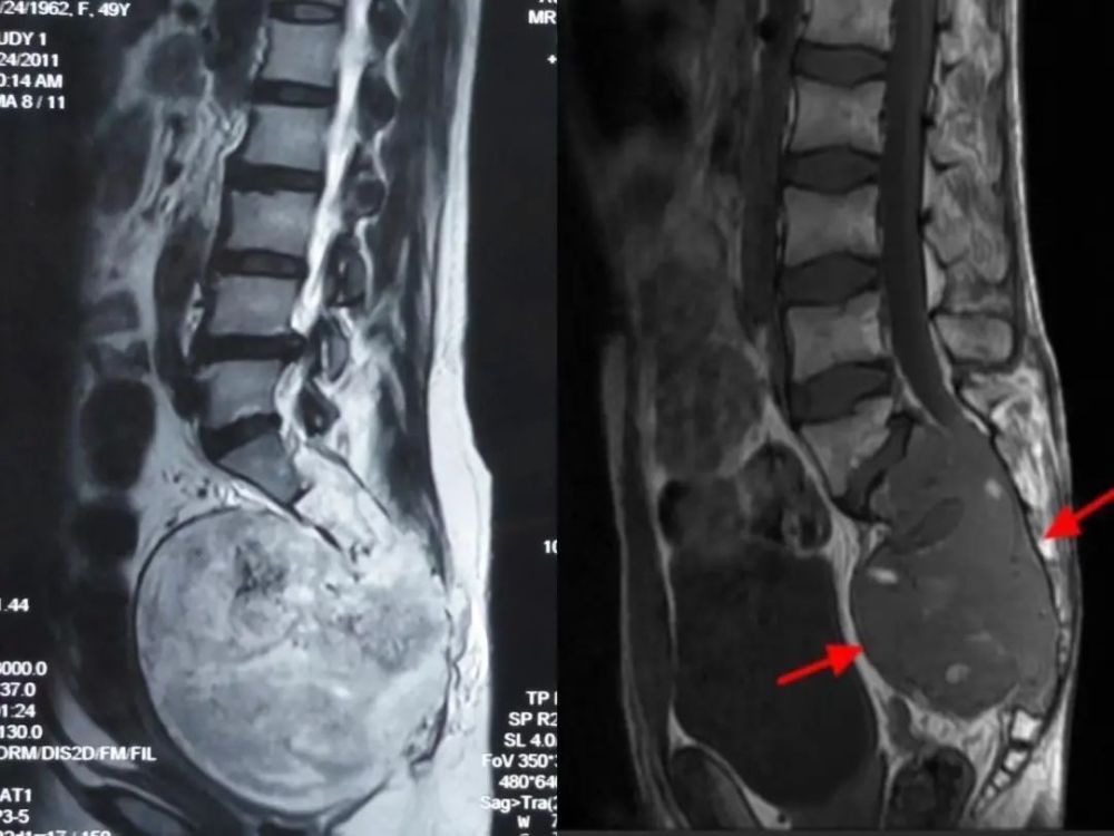 然而,骶骨肿瘤的早期症状可能仅仅表现为骶尾部或腰部酸、麻、胀、痛,且症状相对局限,因此常被误诊为腰椎间盘突出症或腰背部筋膜炎。大多数骶骨肿瘤的患者在发现时瘤体已经很大了,给手术和预后增加了很多困难,故称其为“隐形的杀手”。所以对于骶骨肿瘤,我们要早发现、早治疗,以免产生严重的后果。