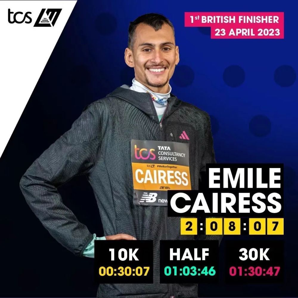 法拉本场谢幕战还有另一重传承意味:与他共同保持着27:44的10公里英国纪录的埃米尔·凯瑞斯(Emile Cairess)以2:08:07首马收获第六名,拿下英国本土冠军。