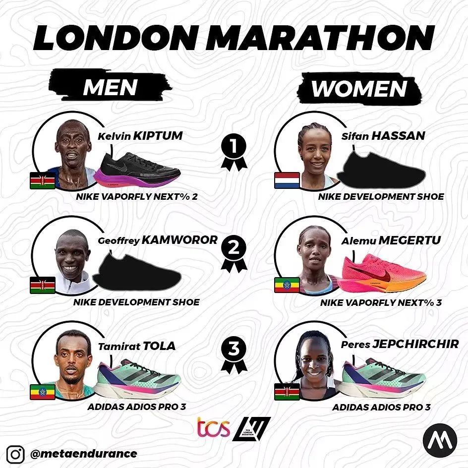 本周,转场伦敦,Nike收复失地,男女冠亚军四人均穿着该品牌跑鞋,哈桑和坎沃若更是穿着未发布的原型鞋,尚不确定是否就是新一代的Alphafly。